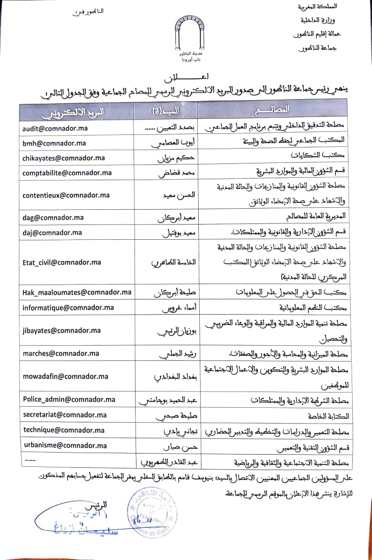 البريد الإكتروني الرسمي لمصالح جماعة الناضور